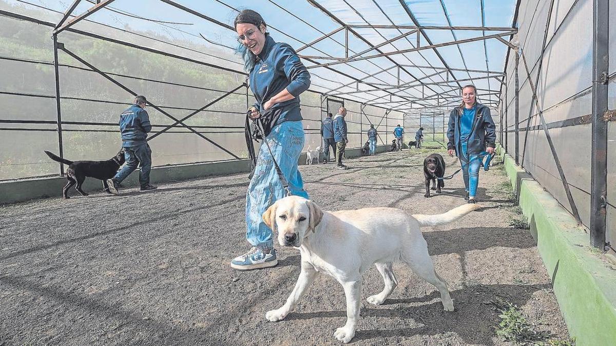 Die Hunde schnüffeln auf der Finca, seit sie vier oder fünf Monate alt sind. Neun Labradore und ein Golden Retriever namens Suggar kamen als Welpen und ohne Vorkenntnisse nach El Viso. Darunter sind auch Soto und Sara, weiß; Estela und Emilio, schwarz; Suso, Santi – der schärfste Bleistift im Etui –, Lolo, Lúa und Lisa, alle fünf in Schokoladenbraun. Auch wenn sie an dem Vormittag, an dem dieser Bericht entsteht, ein wenig in der Teenager-Phase sind und sich zwischendurch von der Kamera ablenken lassen, wissen sie zu diesem Zeitpunkt bereits, im Schritt des Nutzers zu laufen, ohne vorzupreschen, sich im richtigen Moment zu drehen und regungslos zu bleiben, wenn die Leine zu Boden fällt.