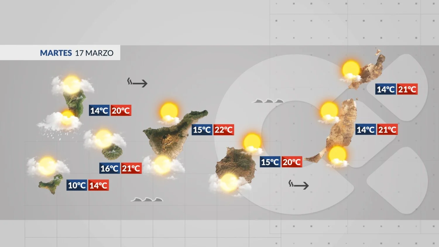 Dieser Dienstag markiert den Übergang auf den Kanarischen Inseln. Die atlantische Tiefdruckzone Therese nähert sich dem Archipel und macht sich mit ersten Auswirkungen bemerkbar. Es wird wolkiger, lokal sind Regenfälle möglich und der Wind frischt auf. Der Sahara-Staub (Calima) hingegen lässt im Laufe des Tages nach.