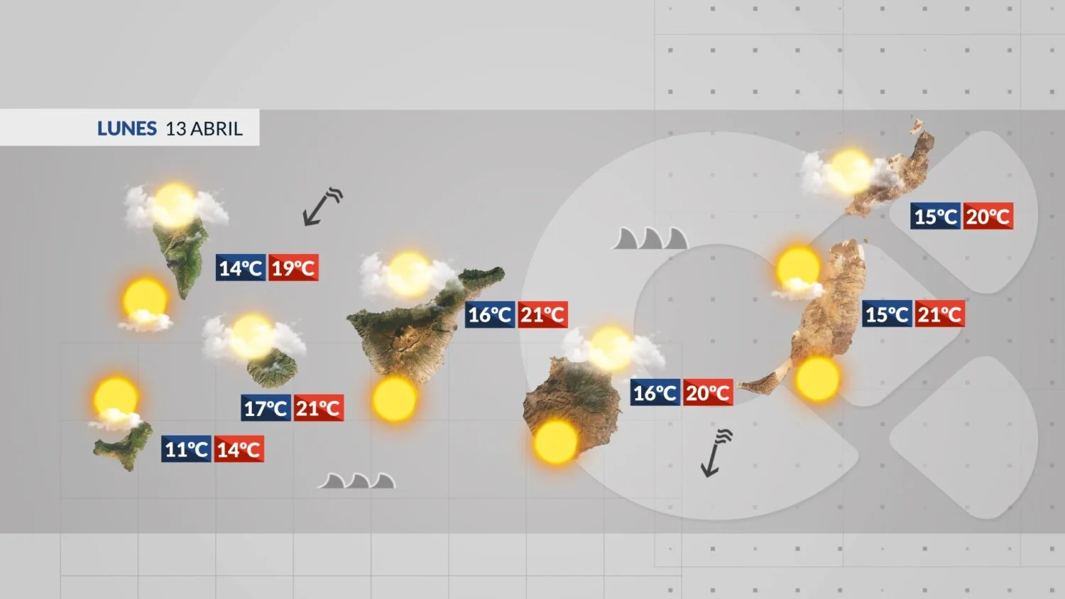 Im Norden hält sich die typische „Panza de burro“, eine geschlossene Wolkendecke, ohne dass nennenswerter Regen fällt. Im Rest der Insel ist es überwiegend wolkenlos oder sonnig. Der mäßige Nordostwind kann sich in den Gipfellagen sowie an den Südost- und Nordwesthängen zu sehr starken Böen verstärken. In Las Palmas werden etwa 20 Grad erwartet.